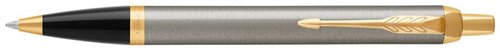 El bolígrafo metal cepillado IM es elegante y fino, con una punta de acero inoxidable duradera, cuerpo en color acero pulido que complementan con adornos dorados y negros. Los recambios de bolígrafo de punta media proporcionan una experiencia de escritura extra suave y un mejor flujo de tinta, ofreciendo una fiabilidad y un rendimiento óptimos. Un regalo elegante y discreto con garantía de dos años.