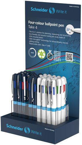 Boligrafo De 4 Colores Schneider Take 4 Surtido Expositor De 36 (18X Blanco + 18X Azul)