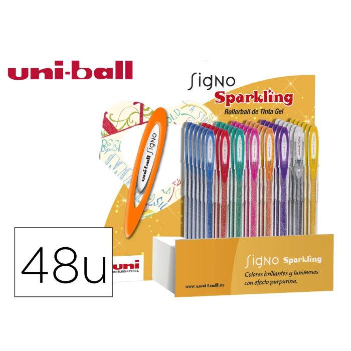 Uniball UM-120 Bolígrafo Tinta Gel 0,7 mm Expositor de 48 Colores con Purpurina