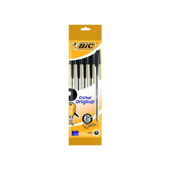 Bic Bolígrafo Cristal Original Tinta Negra Bolsa 5 Unidades Punta Media 1mm Trazo 0.32mm