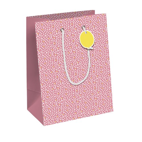 Bolsas plegables de regalo en papel estucado de 210 g/m² con asas de cordel. Medidas: 215 x 102 x 253 mm.