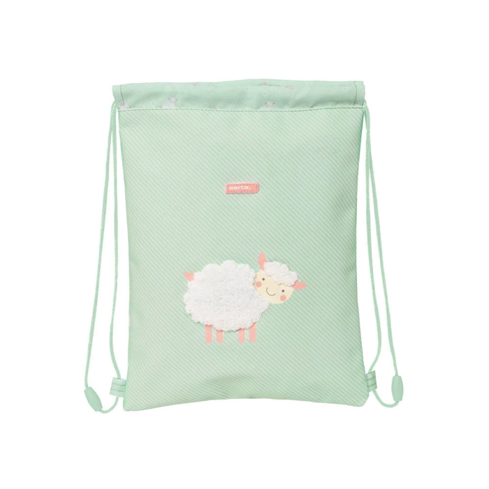 Bolsa Mochila con Cuerdas Safta Ovejita Verde (26 x 34 x 1 cm)