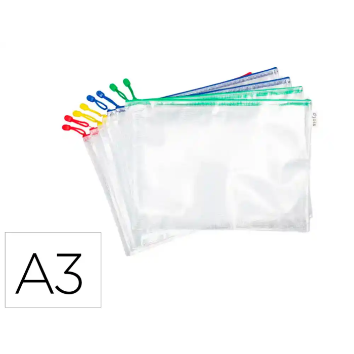 Djois Bolsa Multiusos con Cremallera DIN A3, Pack 8 Unidades, Colores Surtidos