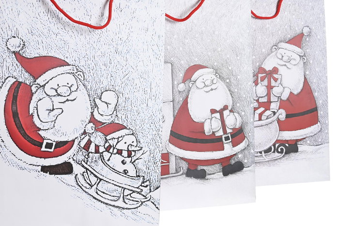 DKD Home Decor Bolsa de Navidad Papel Tradicional Papa Noel Rojo Blanco 10x33x46 cm, Pack 12 Unidades, 160g Capacidad