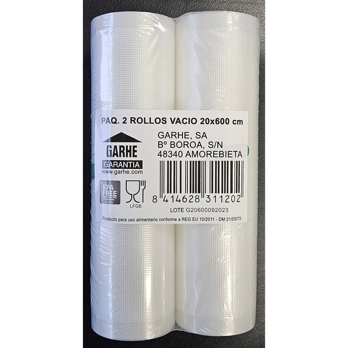 Las Bolsas para Envasadora Garhe 31120 son un accesorio esencial en cualquier cocina que emplea envasadora al vacío para conservar alimentos frescos durante más tiempo y de forma segura. Este set incluye 2 unidades de rollos tipo maya, cada uno con unas dimensiones de 20 cm de ancho por 6 metros de largo, lo que permite cortar bolsas personalizadas según la cantidad y tipo de alimento a envasar, proporcionando máxima versatilidad en el uso doméstico o profesional. Fabricadas con material certificado para uso alimentario (certificación CE), estas bolsas garantizan la seguridad e higiene necesarias para el contacto directo con alimentos. Su diseño gofrado facilita la extracción eficiente del aire y una sellado hermético, clave en la conservación al vacío, además de ayudar a prevenir la formación de bolsas de aire o fugas durante el almacenamiento o la congelación. Con un grosor de 90 micras, ofrecen alta resistencia tanto a la rotura como a la perforación, soportando tanto procesos de congelación como cocción al vacío a baja temperatura (sous-vide). Compatibles con la mayoría de envasadoras de tipo doméstico que utilicen enchufe EU, estas bolsas destacan por su durabilidad y adaptabilidad, permitiendo prolongar la vida útil de carnes, verduras, quesos y otros productos frescos sin pérdida de calidad o sabor. Ideales para usuarios que desean optimizar la conservación y organización de sus alimentos, las bolsas Garhe 31120 representan una solución práctica y segura gracias a sus materiales de alto estándar y a la posibilidad de personalizar el tamaño de las bolsas según la necesidad de cada momento. Con su formato en rollo y facilidad de uso, estas bolsas para envasadora son una elección conveniente para quienes buscan eficiencia y calidad en el proceso de envasado al vacío.
