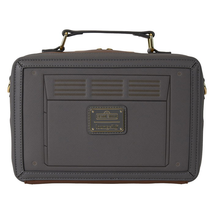 Sesame Street. Tamaño: 24,77x6,35x21,34cm. Piel vegana (poliuretano). Bandolera ajustable (desmontable). Asa superior. Herrajes dorados brillantes. Detalles en relieve, lenticulares y estampados. Forro interior a juego.