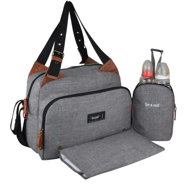 Bebé a bordo - bolso cambiador - bolso titou gris Jaspeado - 2 compartimentos 8 bolsillos - bolsa de almuerzo - cambiador bolsa ropa sucia lazos