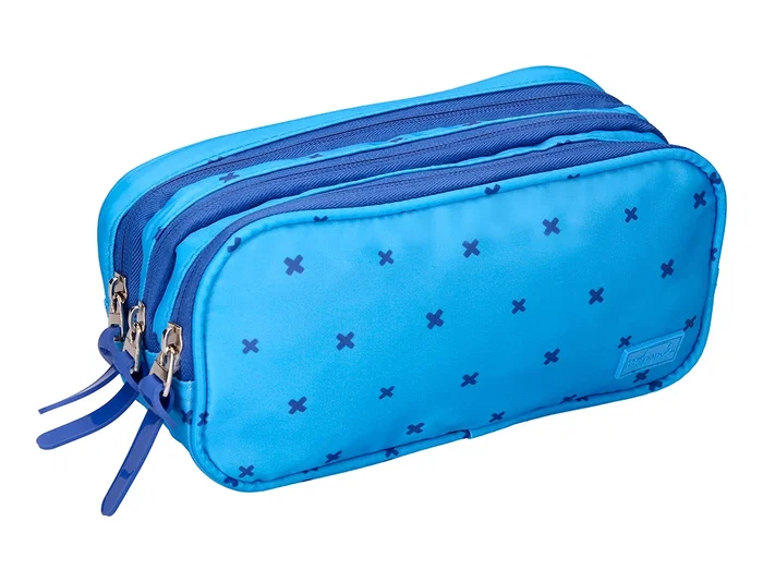 Liderpapel Estuche Portatodo Multibolsillo 3 Cremalleras Azul Cruces A Juego Con Mochila