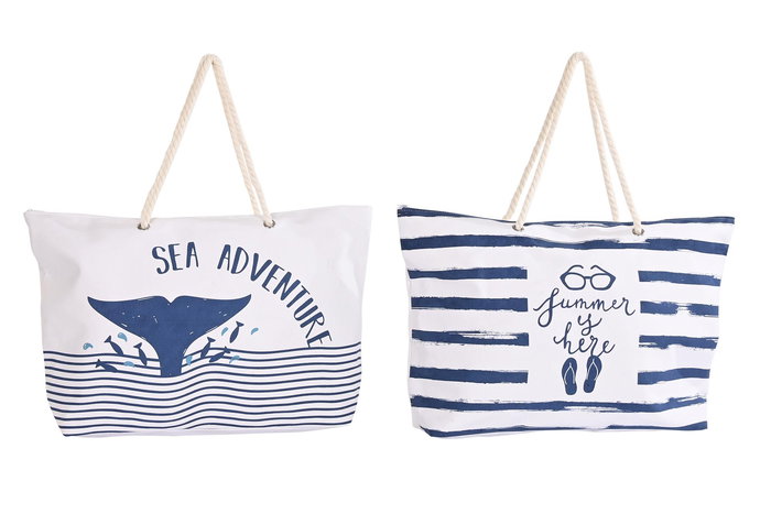DKD Home Decor 4 Unidades Bolso Mediterraneo Blanco Azul Marino Poliester 63 x 42 x 14 cm