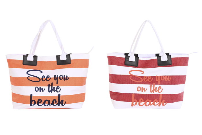 DKD Home Decor Bolso Mediterraneo Naranja Rojo Blanco 16 x 35 x 58 cm Poliester Fibra