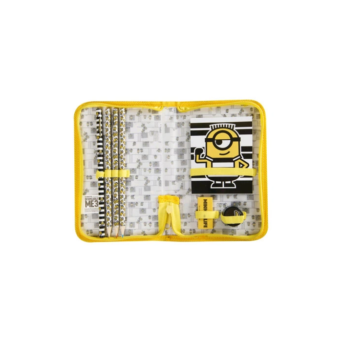 Sambro Bolso Portatodo Minions con Libreta, Goma, Sacapuntas y Lápices de Colores