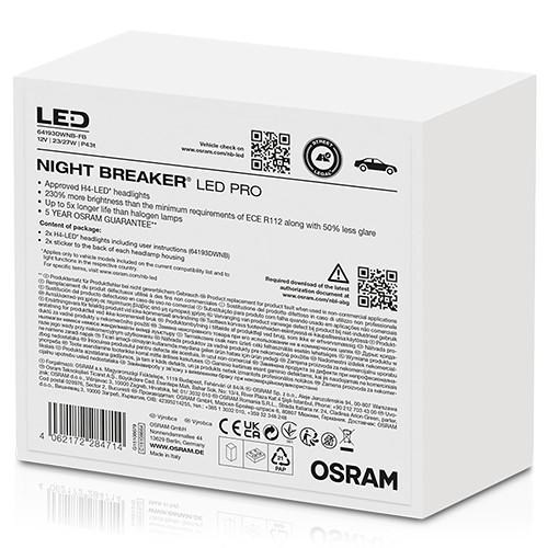 OSRAM H4 LED 2Night Breaker Street Legal Next Gen Pro Set Box CS4, Kit Bombillas LED para Coche