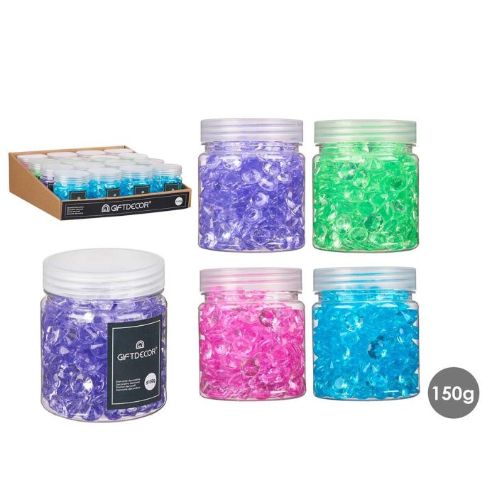 Giftdecor Bote Diamante Mediano Surtidos Colores Plástico 150 gr, 6.5x8x6.5 cm (Set de 32)