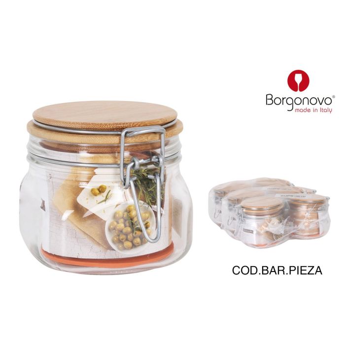 Borgonovo Tarro Hermético Primizie 500 cc con Tapa de Bambú (6 Unidades)