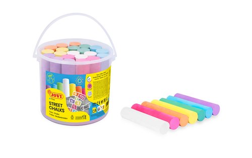 Tizas compactas en colores vivos y luminosos para dibujar en suelo, hacer juegos o murales. Tamaño: 100 x ø20 mm.