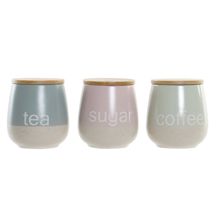 DKD Home Decor Bote Scandi Gres y Rubberwood Rosa Verde Azul 10 x 16 x 10 cm (3 Unidades)