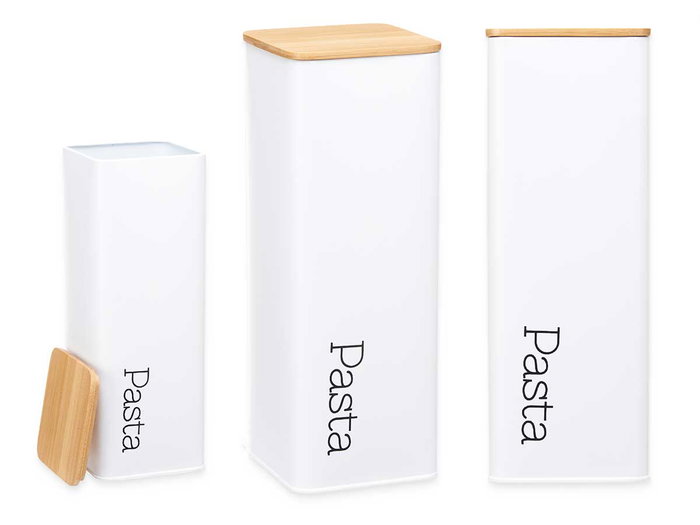 BOTE METAL ALTO PASTA BLANCO TAPA BAMBU