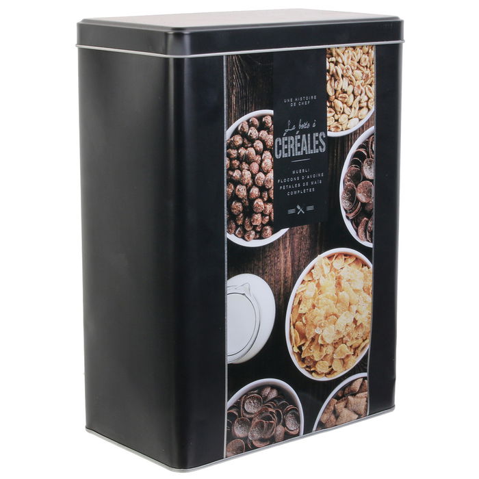 - De metal, con imagen impresa y palabra "Ceréales".