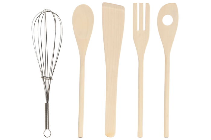 DKD Home Decor Pengjia flower 2025 Basicos Set Utensilios Porcelana Bambu Blanco Natural 11 x 11 x 25 cm Set 6 Piezas