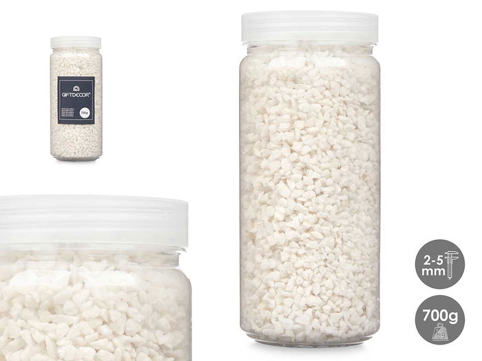 Giftdecor Bote Decorativo de Piedra Blanca, Tamaño de Piedras 2-5 mm, 700 g, 6.5 cm x 15.8 cm x 6.5 cm, para Decoración de Jardín, Interior o Manualidades (Set de 12)