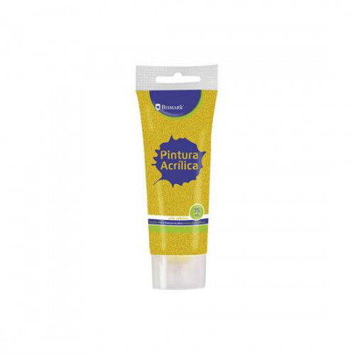 Tubo de pintura acrílica con purpurina de color dorada. Capacidad: 75 ml.