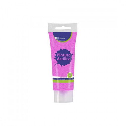 Tubo de pintura acrílica con purpurina de color rosa. Capacidad: 75 ml.