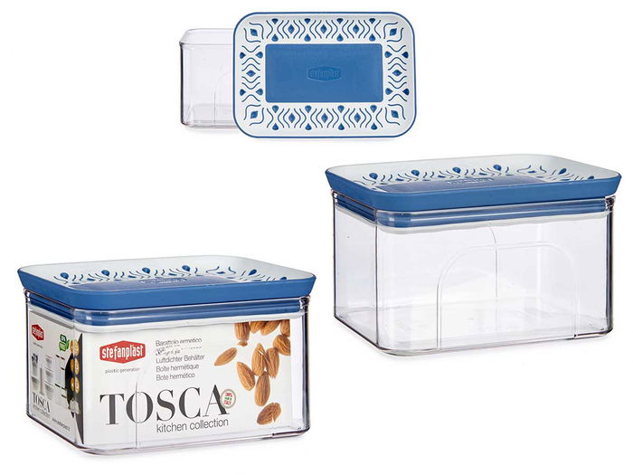 BOTE PLASTICO HERMETICO RECTANG TOSCA AZUL 700ML
