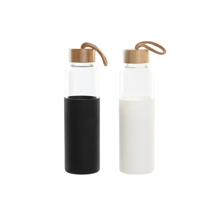 DKD Home Decor Botella Basicos Blanco Negro 6.6 x 23 x 6.6 cm (4 Unidades) Borosilicato Bambu 550ml