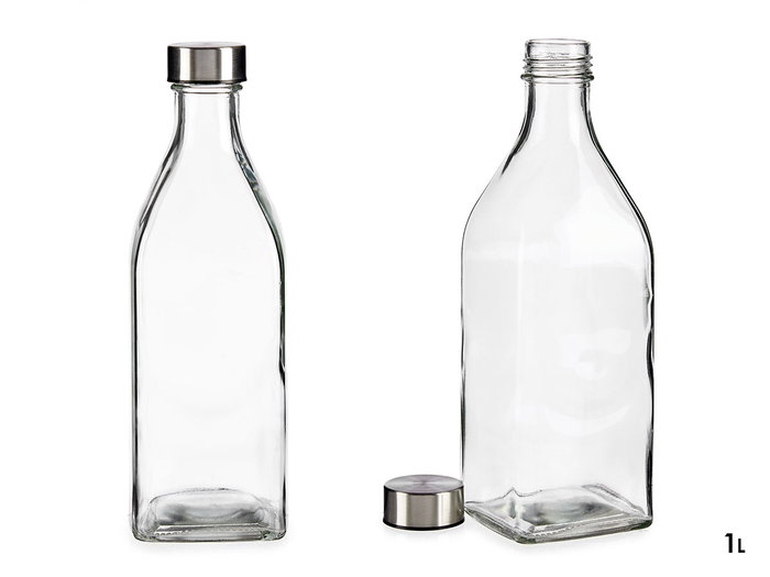 BOTELLA CRISTAL CUADRADA TAPON ACERO 1L