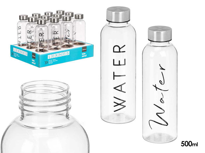 BOTELLA AGUA NEGRO TRANSPARENTE 500ML SURTIDOS
