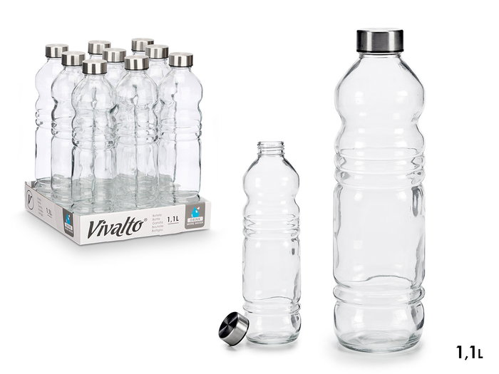 Opiniones sobre Vivalto Botella de Cristal 1100 ml, Transparente y Plata, Dimensiones 8x31x8 cm (Set de 18)