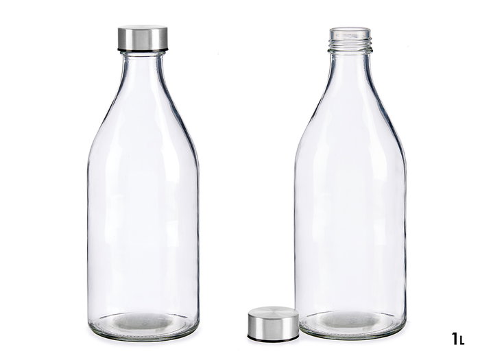 BOTELLA CRISTAL REDONDA TAPON ACERO 1L