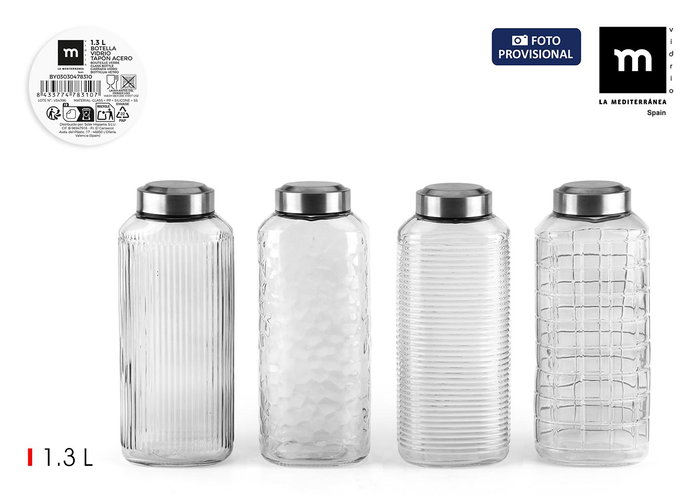 Prj Botella Vidrio Transp.1.3L T/Acero La Me