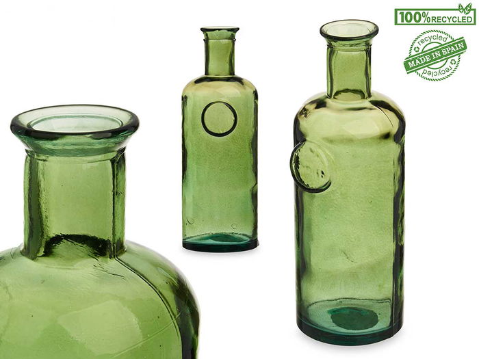 Giftdecor Botella Decorativa Vidrio Stamp 35 cm Verde (Set de 6)