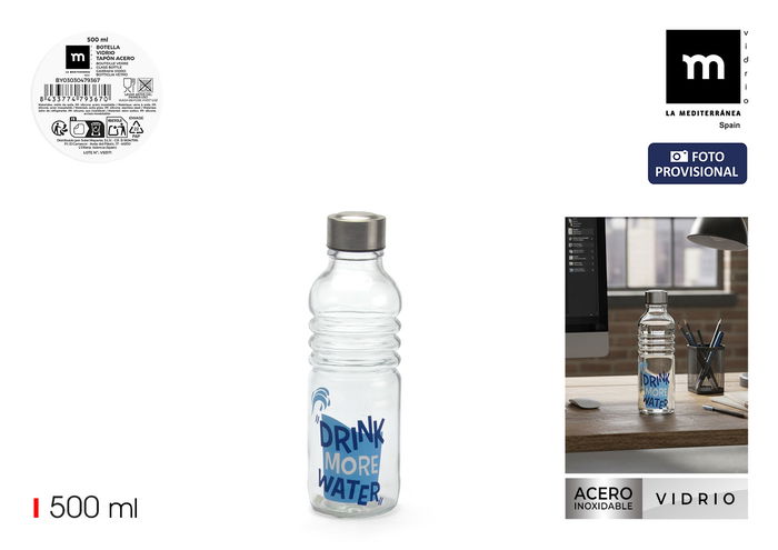 Botella Vidr.Decorada T/Acero 500Ml La Mediterran