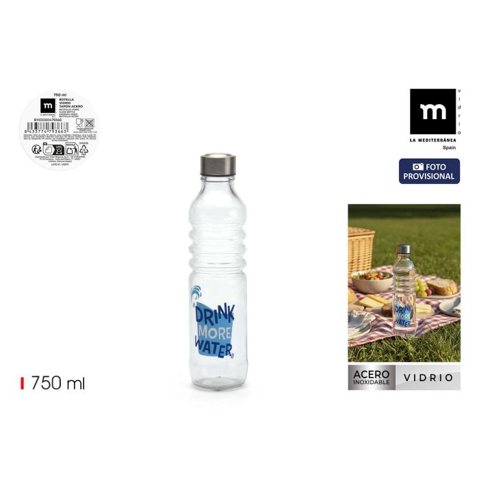 Botella Vidr.Decorada T/Acero 750Ml La Mediterran