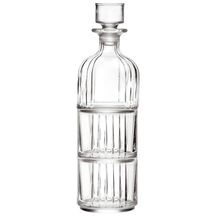 - LUXION® eco-crystal glass Conjunto apilable formado por 2 vasos y una botella.