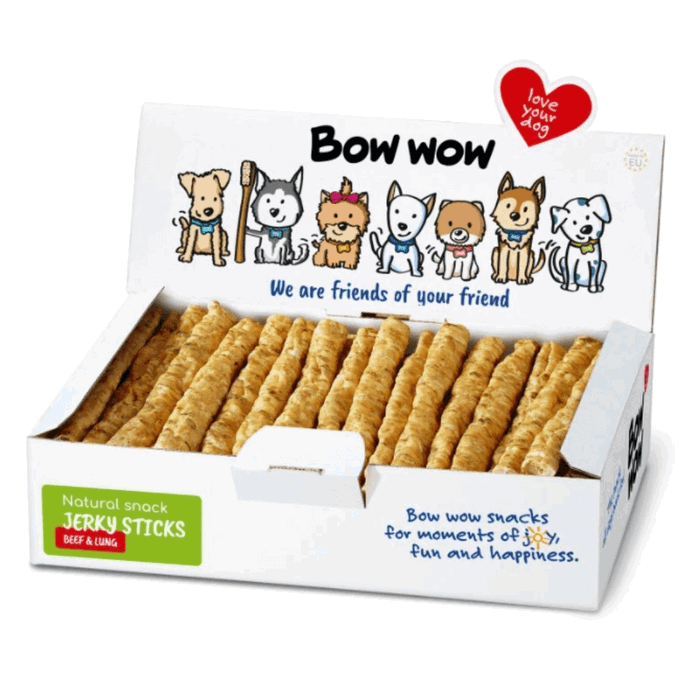 Bowwow Sticks Jerky Ternera y Pulmón 50un, Glucosamina y Condroitina, Sin Cereales