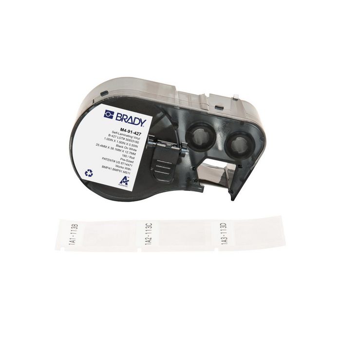 Mark cables and wires with the B-427 self-laminating vinyl label material, designed with a clear self-laminating protective layer. Print almost anywhere with a durable Brady portable label printer.