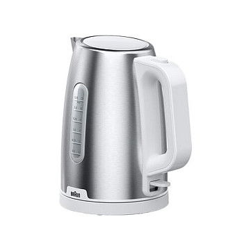 Braun WK 1500, 1,7 L, 2200 W, Acero inoxidable, Blanco, Indicador de nivel de agua, Protección contra sobrecalentamiento