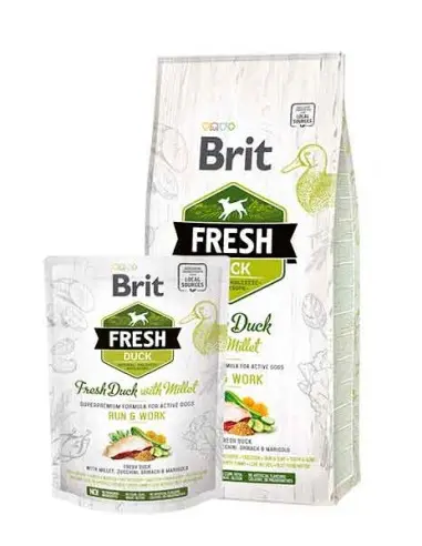 Brit Fresh Active Run Work Pato Mijo 12 kg es una bolsa de alimento seco para perros adultos de alta calidad y gran desempeño. Formulado con pato y mijo, es ideal para perros activos y trabajadores que requieren una dieta energética y de fácil digestión. El producto es de la reconocida marca Brit y viene en un práctico tamaño de 12 kg.
