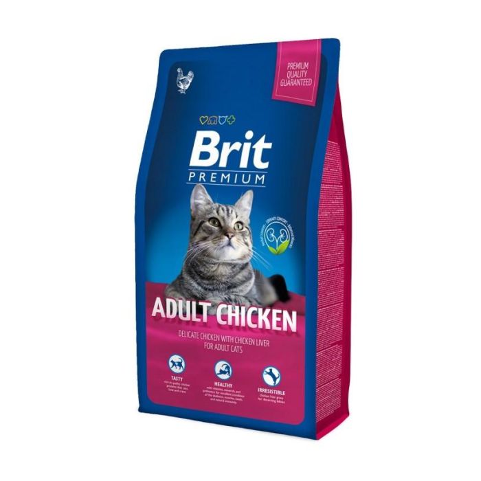 El pienso Brit Premium Cat para gatos adultos con pollo y salsa de hígado de pollo para gatos adultos.