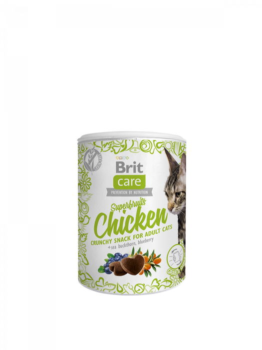 Brit Snacks Superfruits Gato Adulto Pollo 6x100g Crujientes Espino Amarillo Arándanos