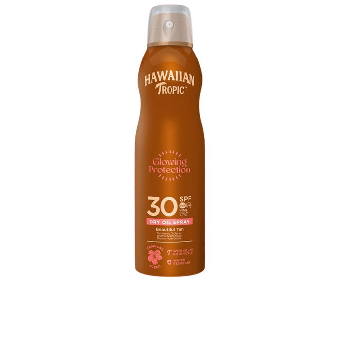 Protector solar corporal en spray Hawaiian Tropic COCONUT & MANGO dry oil SPF30. Disfruta de una alta protección solar con este aceite seco en spray de 180 ml. Su fórmula SPF 30 actúa como un escudo eficaz contra los dañinos rayos UVA y UVB, siendo resistente al agua y de absorción rápida para una sensación no grasa.