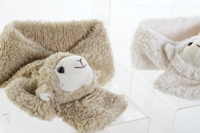 DKD Home Decor Bufanda Ovejitas Kids Blanco Marron Claro 75 x 12 x 8 cm (4 Unidades)