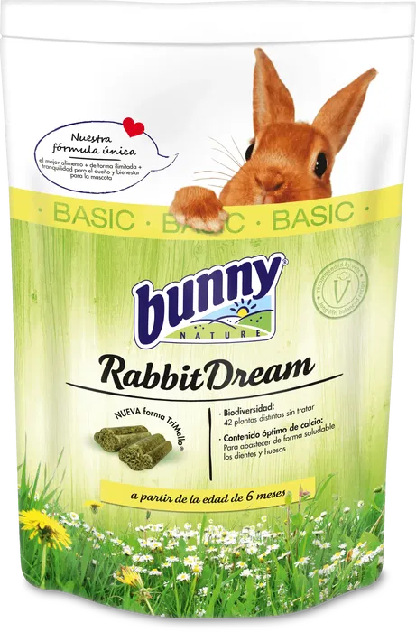 Bunny Nature Alimento Sueño Básico Conejo Enano 1,5 kg. Pienso completo de alta calidad para conejos enanos, formulado para proporcionar una nutrición equilibrada y adecuada para su etapa de vida. Elaborado con ingredientes seleccionados por Bunny Nature, una marca especializada en alimentación natural para mascotas pequeñas.
