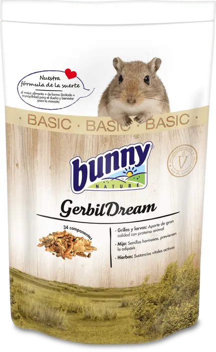 Bunny Nature Alimento Sueño Básico Jerbo 400 gr es la alimentación diaria completa y equilibrada para tu jerbo. Este pienso de la marca Bunny Nature está especialmente formulado para cubrir las necesidades nutricionales específicas de estos pequeños roedores, proporcionándoles todos los nutrientes esenciales para una vida saludable y activa.