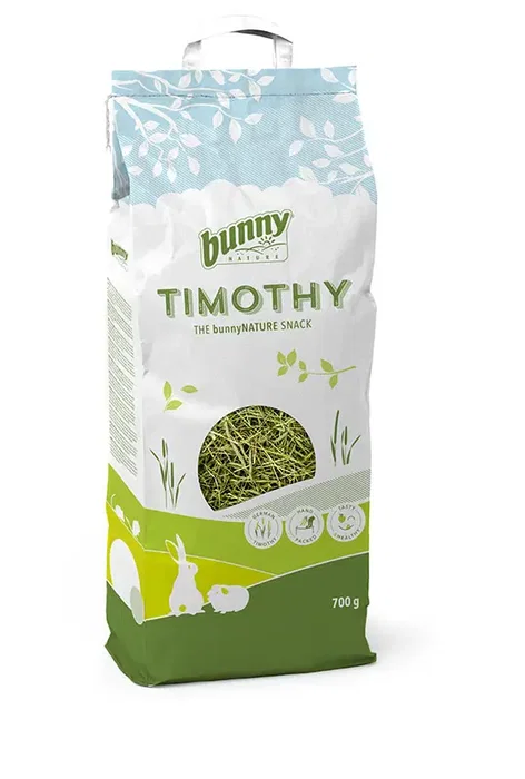 El Bunny Nature Heno Fresco Timothy es un alimento de alta calidad para tu mascota, elaborado con heno de la variedad Timothy. Este producto de 700 gramos proporciona una fuente natural de fibra, ideal para apoyar la salud digestiva y el desgaste dental de conejos y roedores herbívoros.