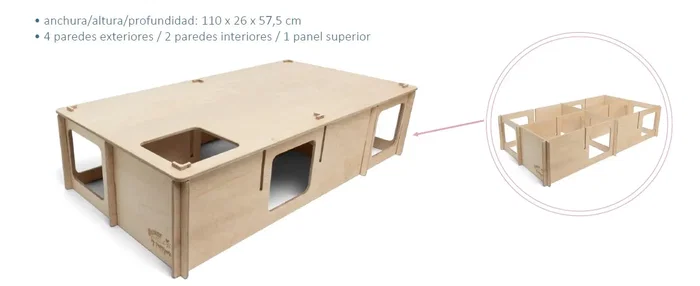 Laberinto Largo Bunny Nature, dimensiones 110 x 26 x 57.5 cm. Este enriquecedor laberinto está diseñado para estimular la actividad y curiosidad natural de tu mascota. Fácil de montar y limpiar. Ideal para crear un entorno divertido y seguro.