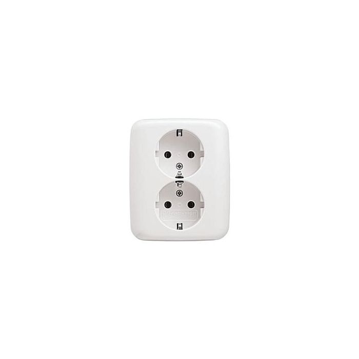 Busch-Jaeger 202 EUJ-214 Enchufe Doble Schuko CEE 7/3 Blanco Sin Tornillos IP20 para Pared 16A 250V